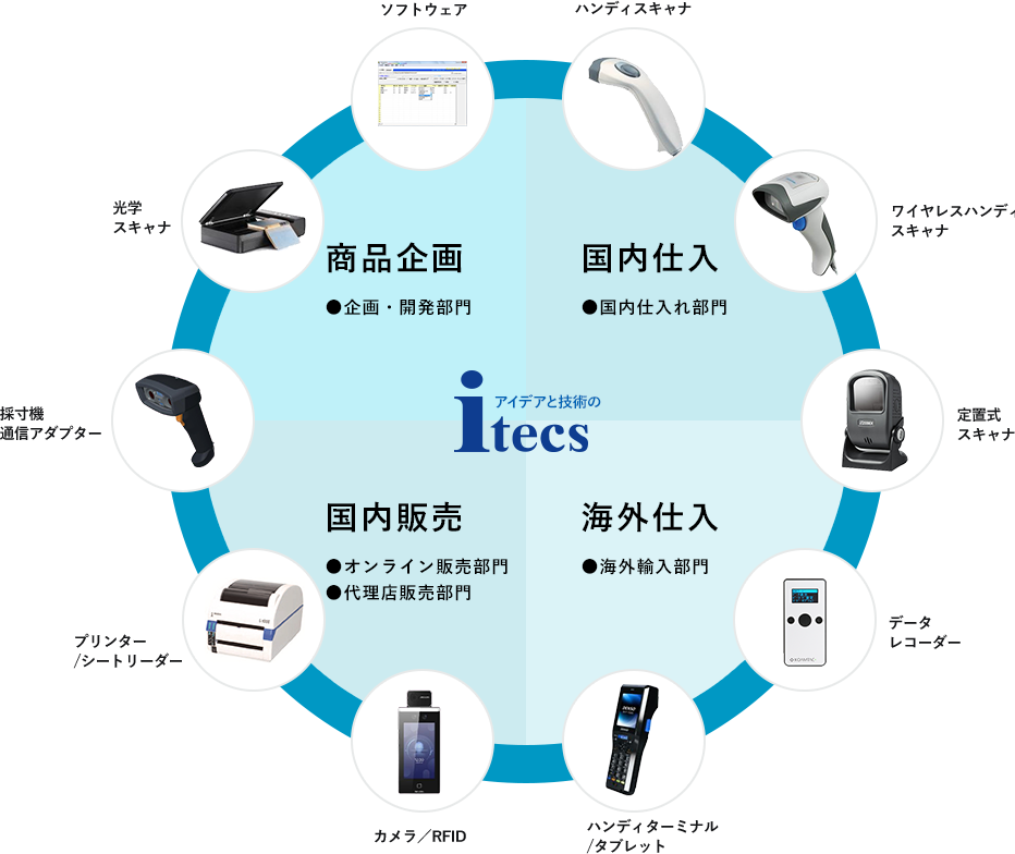 アイテックスはバーコードリーダーやサーモグラフィなどを軸に豊富なラインナップを取り揃えた精密機器の専門商社です。