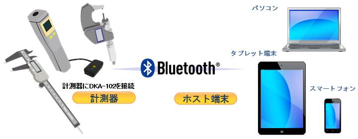 DKA-102は小型・軽量で様々な計測器に接続(接続ケーブルはオプション)することで、ボタン一つでBluetooth® 対応機器にデータを送信することが出来ます。