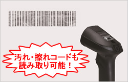 汚れ・擦れなど印刷状態の悪いコードでもあっさり読み取れる性能で、コードの汚れが心配なハードな現場でも安心。
