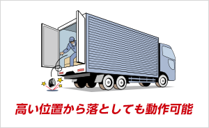 コンクリートに2.5mの高さから6面方向に落下させて動作すること