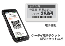 優れたデコード技術により、携帯電話やスマートフォンなどの液晶画面に表示されたモバイルチケットや割引優待券、スーパーや百貨店の陳列棚の電子棚札などの読み取りも可能です。